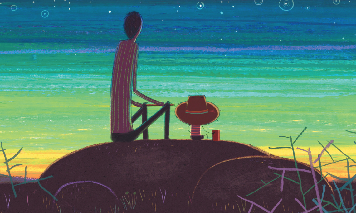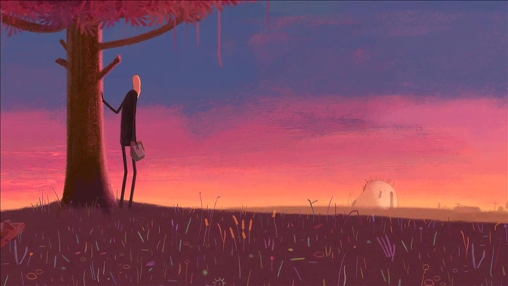 Même sil­hou­ette, même bon­net : est-ce un hasard si le garçon devenu adulte ressem­ble au jeune ouvri­er ren­con­tré dans le bus ? Et si l’arbre, près de sa mai­son, est sem­blable à celui où le vieil homme et son chien ont trou­vé refuge ? Marchant sur les traces de son père, le garçon serait-il par­ti à la recherche de lui-même ?